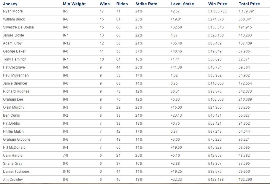 Just a glance at the JockeyChamps current leader board showing how many top riders you could be backing and making some profits.