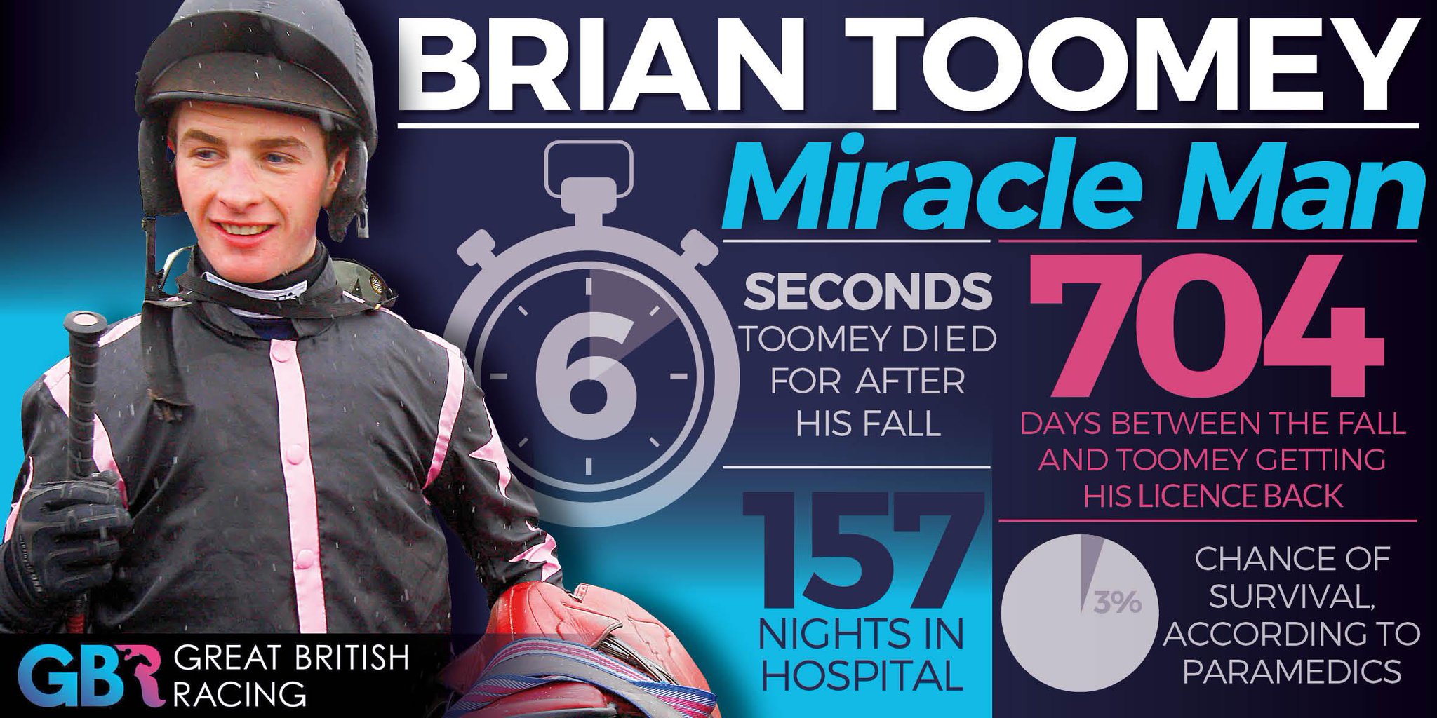 After a fall 2 years ago that nearly killed him, jockey Brian Toomey rides Kings Grey in the 4.20 at Southwell today.