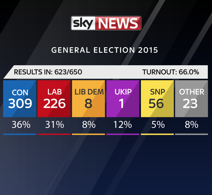 Well what a result with just a few more to come it's clearly been a very good night for the Tories and terrible for both Lib Dems amd Labour, and whilst the SNP have taken over Scotland they won't be too happy re the Tories.